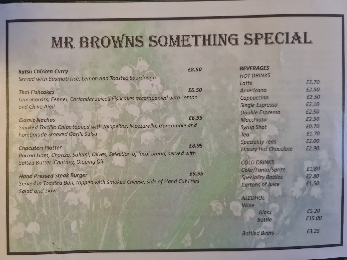 The Mr Browns Menu at 17 Front St, Brampton CA8 1NG, United Kingdom, delivers a surprisingly delightful culinary experience that combines comfort food staples with inventive flair. As a reviewer with a keen eye for detail and a preference for authentic, community-rooted dining, I found Mr Browns to be more than just a typical eatery-it’s a genuine neighbourhood gem that understands its clientele well.